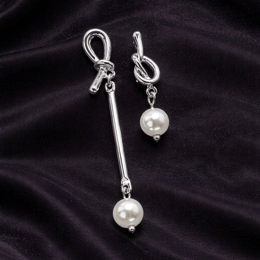 A graceful balance of structure and softness, these asymmetrical earrings pair sleek gold/silver lines with luminous pearl drops. Designed to embody modern elegance, they bring a subtle statement of sophistication to any look.