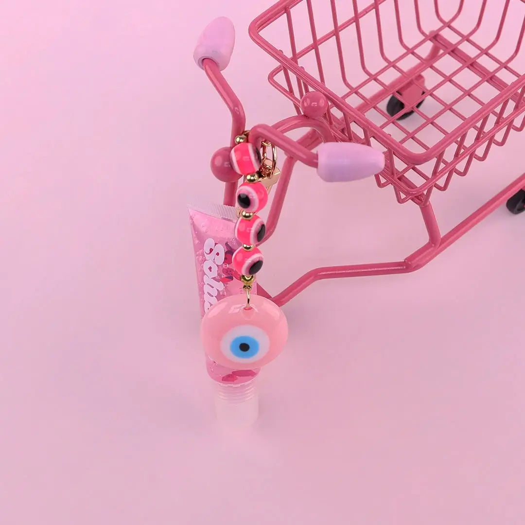 Be the talk of the town with our Charmed Keychain! Not only does it hold your keys, but also your lip gloss (so you're always ready for a touch-up). Charm your way through the day with this fun and functional accessory.