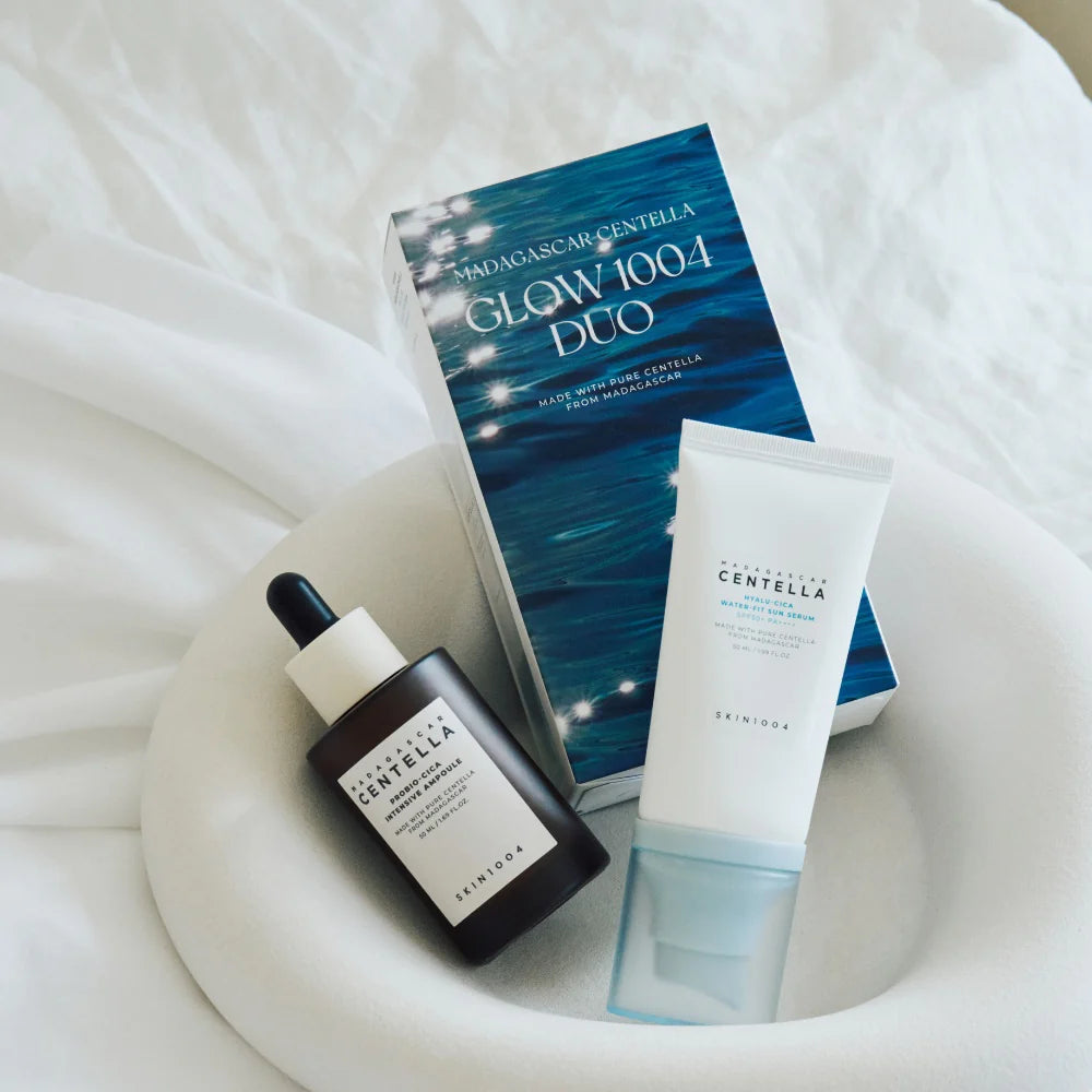Unlock your skin's luminous potential with SKIN1004 Madagascar Centella Glow 1004 Duo. This transformative skincare set harnesses the power of Centella Asiatica extract from Madagascar, renowned for its exceptional soothing and restorative properties. The synergistic duo calms reactive skin, evens complexion, and reveals a coveted glass-skin finish. Enriched with pure, natural ingredients, it fortifies your skin barrier while visibly diminishing acne marks and delivering intense, lasting hydration.